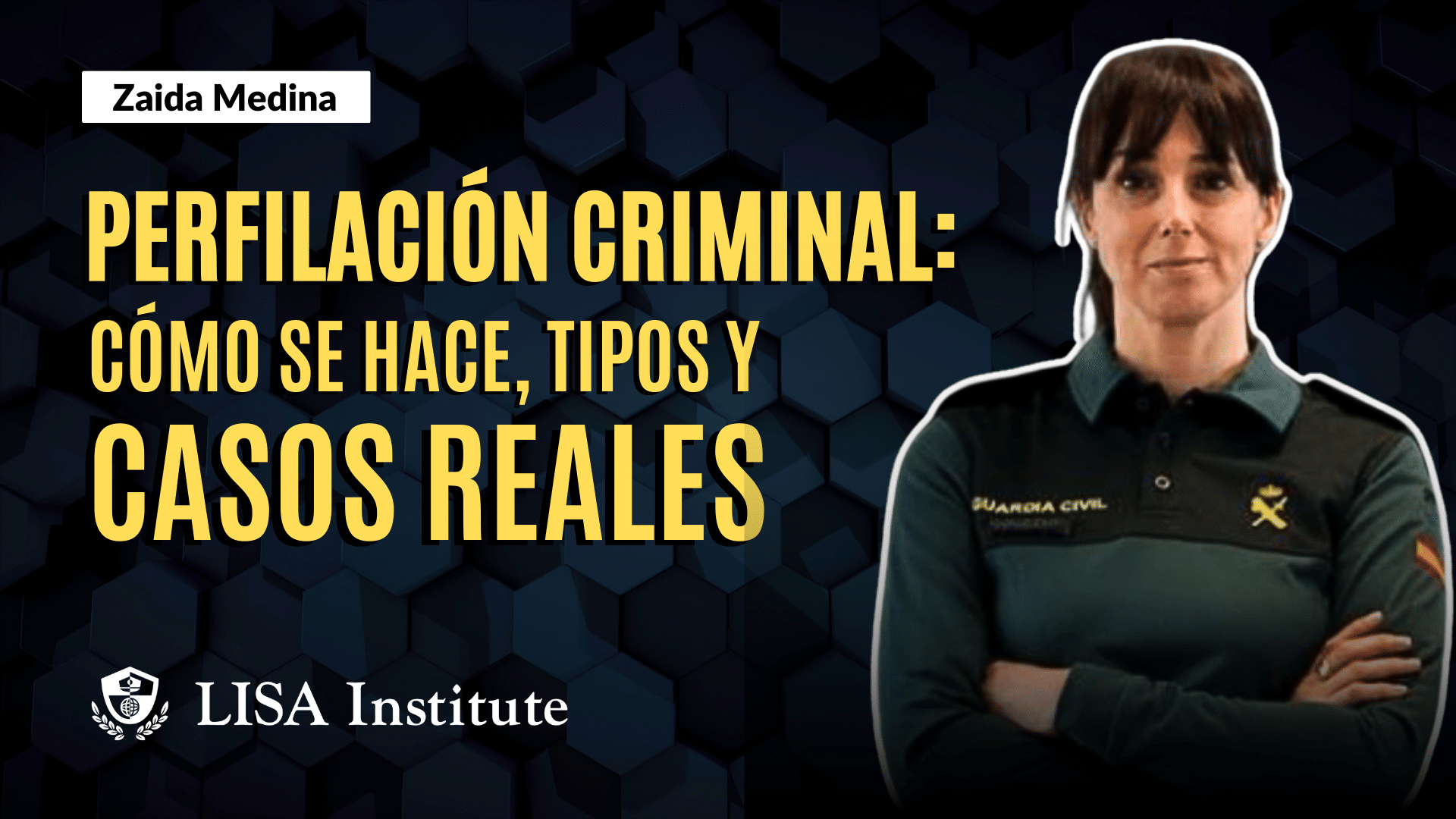 👤 Zaida Medina, criminóloga y miembro del departamento de delitos contra las personas y el patrimonio en la Unidad Central Operativa de la Guardia Civil. Profesora y Mentora del Máster Profesional de Analista Criminal y Criminología Aplicada y del Curso de Experto en Perfilación Criminal de LISA Institute
