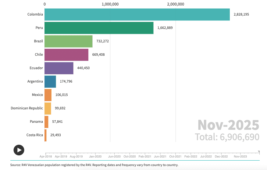 Las tensiones políticas internas, las elecciones fraudulentas, la inestabilidad económica y la falta de libertad presente en Venezuela generaron, desde hace años, una migración masiva de su pueblo. El objetivo de esa migración fue buscar mejores expectativas de vida y una mayor seguridad. Existen cifras de más de 7 millones de ciudadanos venezolanos reconocidos como migrantes en América Latina y el Caribe según organismos internacionales. Además, se estima que hay millones más que no están legalizados en esos países, por lo que no aparecen en los datos oficiales.