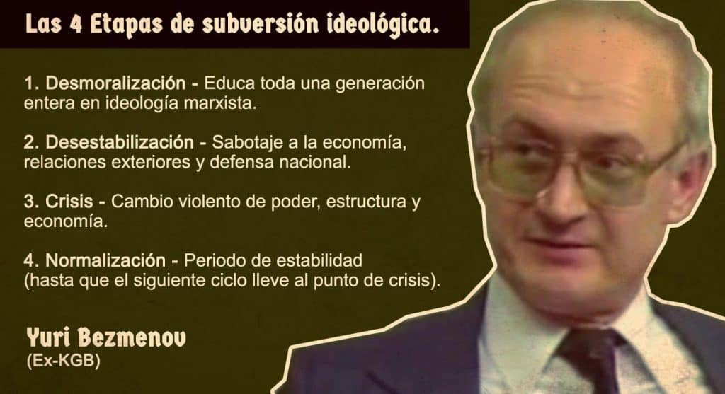 En 1984, durante entrevistas con el periodista W. Eduard Griffin, Yuri Bezmenov detalló el proceso que él llamaba «subversión ideológica» y se dividía en 4 fases: